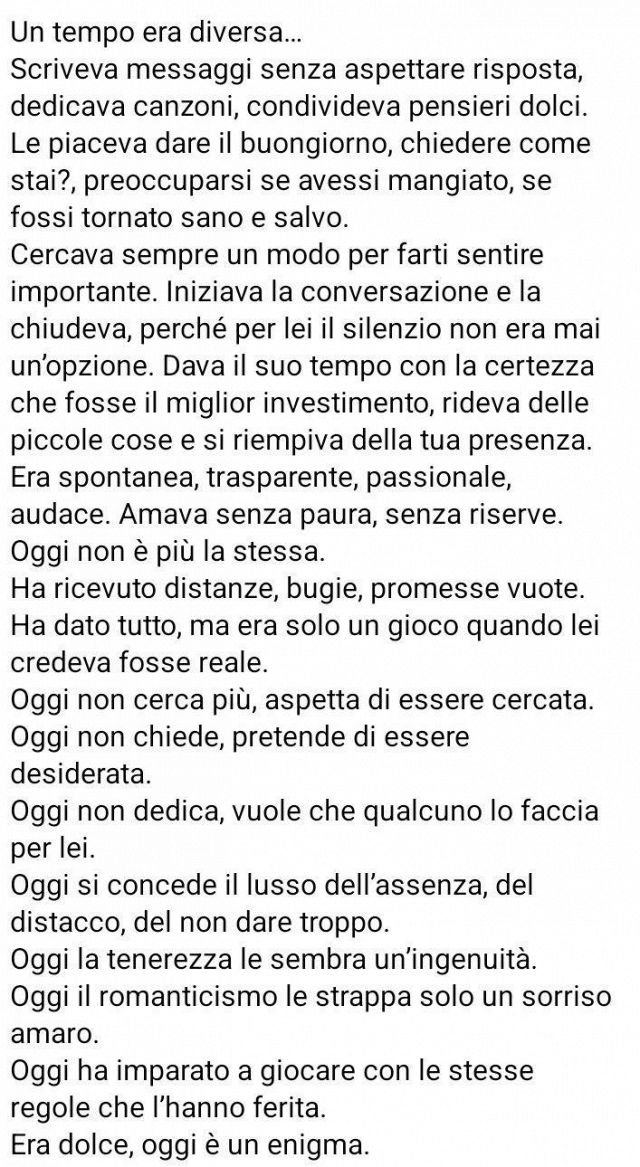 Sto lentamente ritornando ad essere me stessa. Non più arrabbiata, non più sulla difensiva,non più sarcastica... Non mi piaceva come ero diventata. Sto riprovando il piacere di conoscere le persone...di lasciarmi andare....ridere...scherzare.