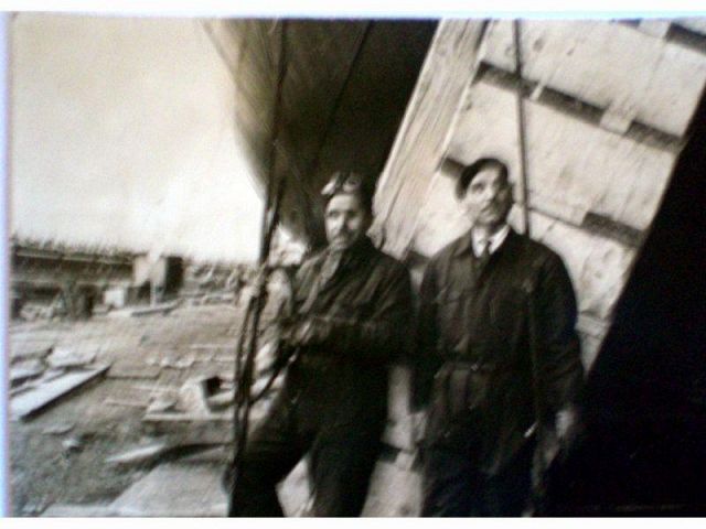 Una vecchia foto di mio padre "quello con gli occhiali sulla fronte" con un amico , la foto è stata scattata al cantiere navale Breda, oggi Fincantieri