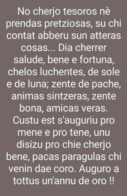 ambradistelle 01 gennaio Ieri vi ho augurato buon anno in siciliano e oggi ve lo auguro in sardo perché metà del mio cuore è in Sardegna... Ti piace? 21 Segnala