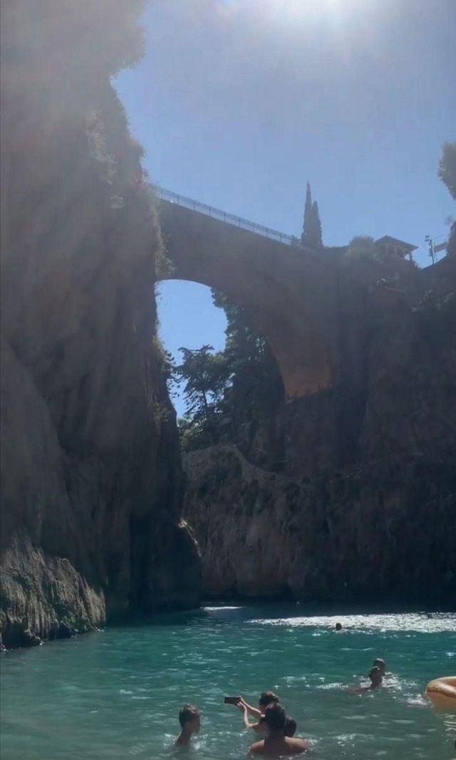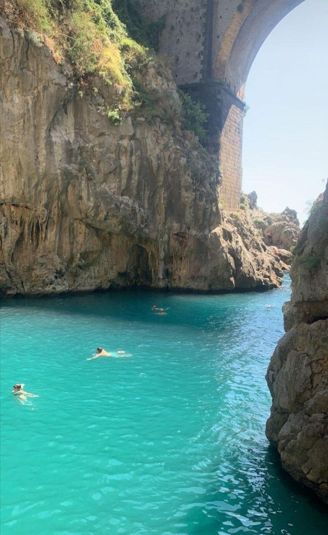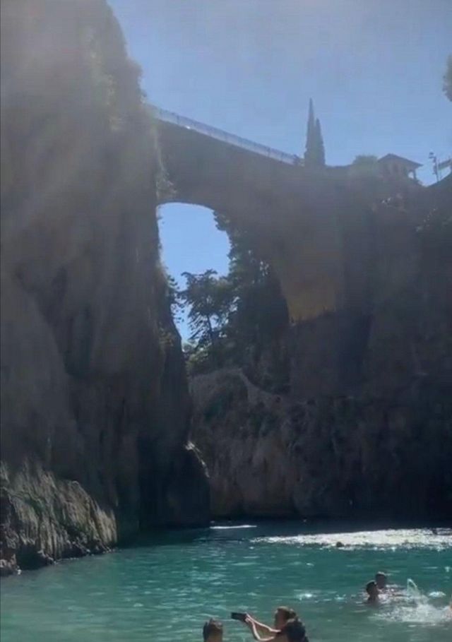 Amici oggi mi trovo Amalfi. Ma sono venuta a farmi un bagno qui ...... alla piccola spiaggia di Furore non si può accedere in auto, ma solo a piedi, scendendo dalla Statale attraverso un percorso nella parte rocciosa. Quindi, dalla strada statale ci sono le scale che portano alla spiaggia ma bisogna parcheggiare a Praiano e raggiungerla con una navetta o con i bus.....