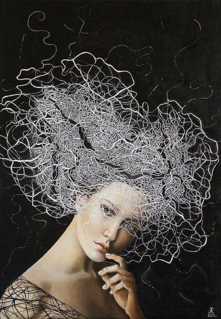 il fluido velo che contrasta il marmo