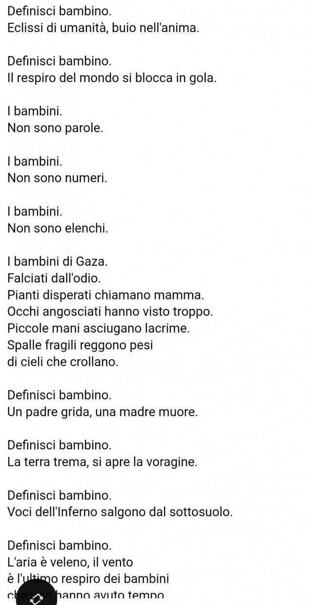 Per questo il pogrom del 7 ottobre... l’avverarsi di una profezia infausta. Ma poi era venuta la lunga, infinita risposta di Israele. E devo dirlo sinceramente, per me quanto accaduto in Palestina da allora – quanto sta accadendo ora – non costituisce solo una tragedia per quel popolo, per quei popoli, al cui dolore partecipo per l’empatia che ci impone il nostro essere “umani”. È qualcosa di più radicale, e vorrei dire “personale”: è una catastrofe esistenziale.