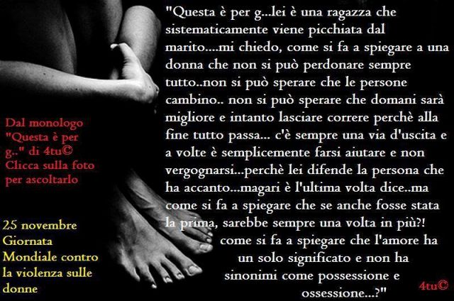In rappresentanza di tutte le donne vittime di violenze e che hanno perso la vita ,alcune con i propri figli in attesa,morte per mano di chi diceva di amarle.