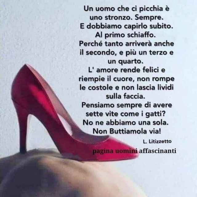 Con le donne e per le donne, non nascondervi dietro ogni scusa plausibile agli occhi degli altri , l' amore non lascia lividi , chi usa le mani una volta le userà sempre e questo non è amore, chiedete aiuto.❤️👠👠