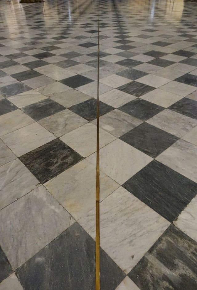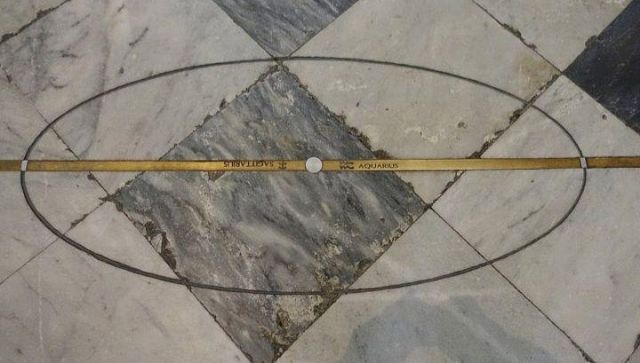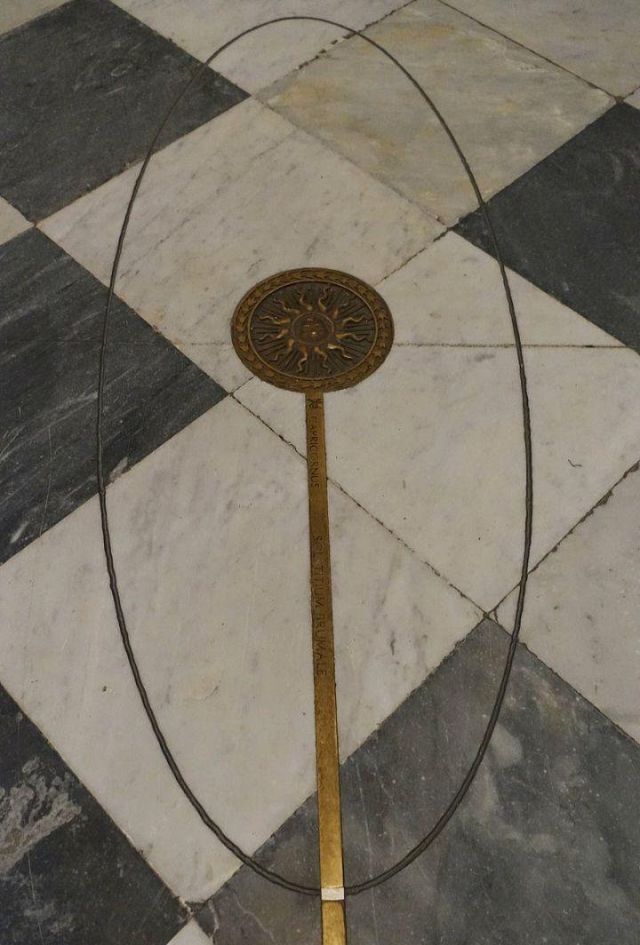 Cosmografo del granduca Cosimo I dei Medici, Egnazio Danti progettò le due meridiane ancor oggi presenti in Santa Maria Novella col fine di approfondire i suoi studi astronomici e soprattutto per supportare in modo scientifico la teoria secondo la quale l’antico calendario giuliano aveva portato, nel 1575, ad un disallineamento di 10 giorni rispetto alla realtà, falsando la data liturgicamente esatta della Pasqua e delle annesse feste mobili.
