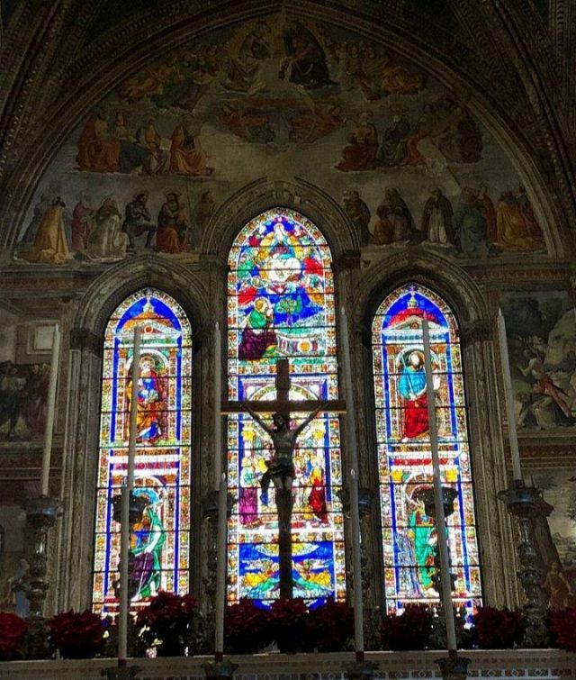 Magnifiche vetrate della Cappella Tornabuoni.