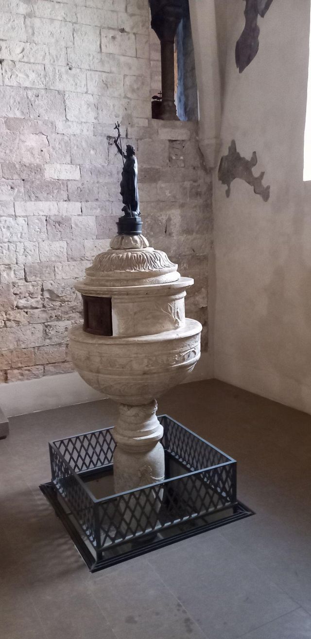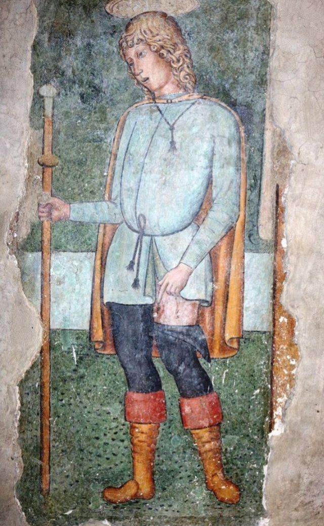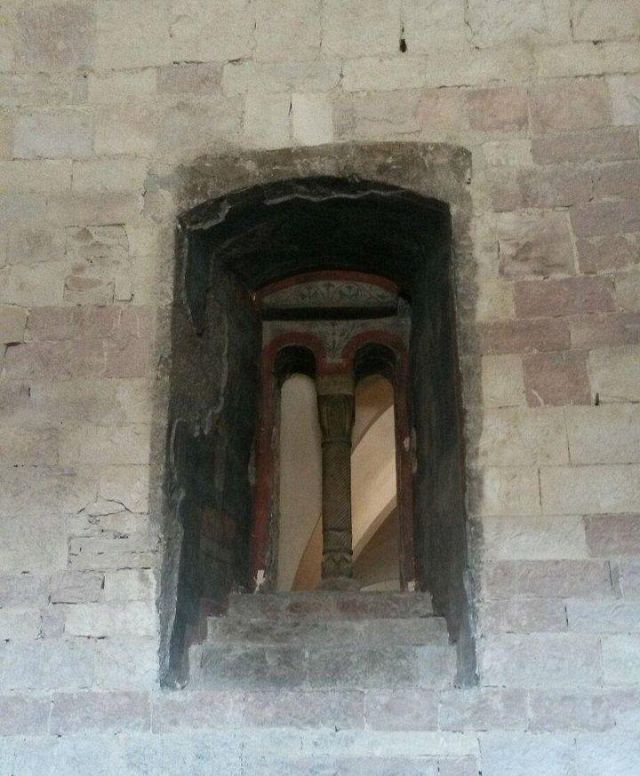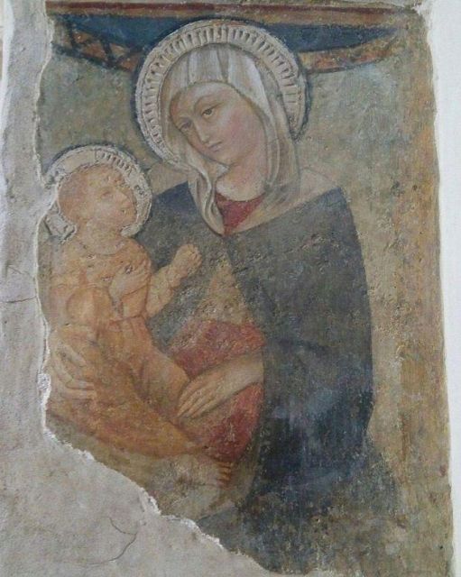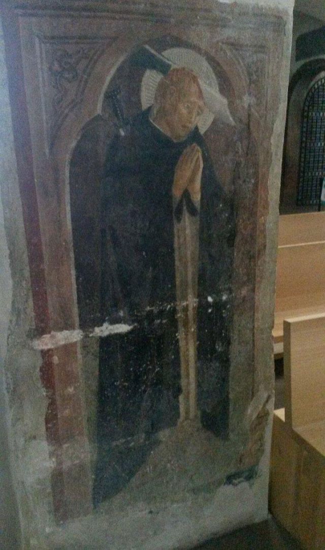 L'interno a tre navate è diviso da pilastri; la navata mediana è con volta a botte, mentre le laterali, aggiunte nel corso del XV secolo, sono con volte a crociera. Alle pareti e sui pilastri si vedono numerosi affreschi votivi.