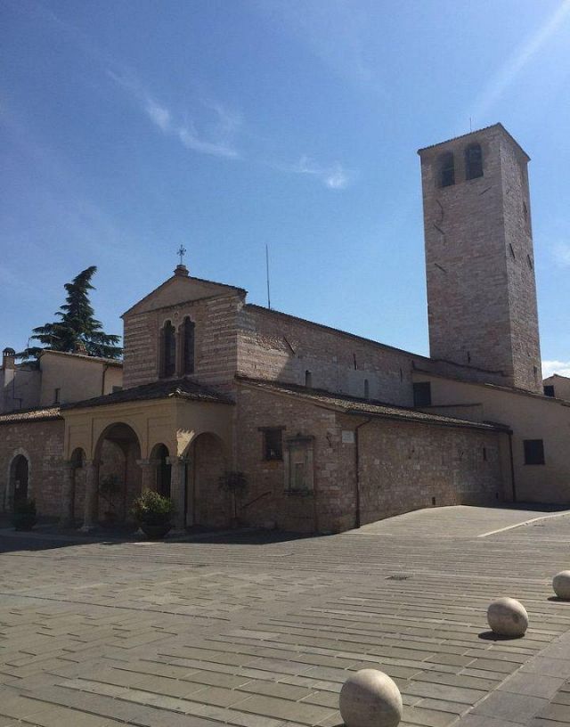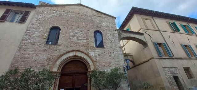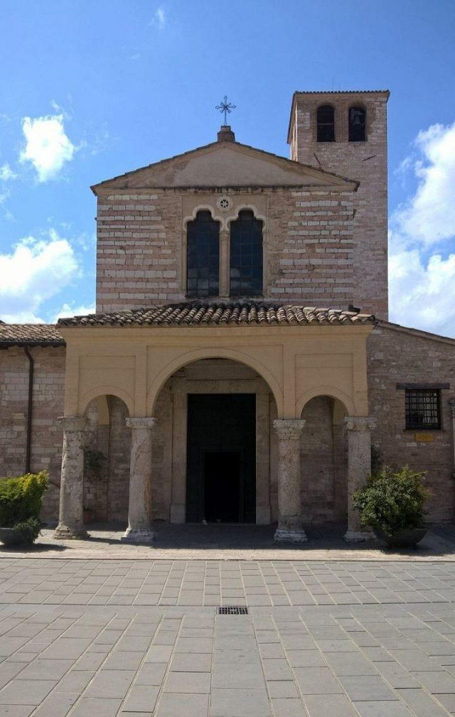 In piazza San Domenico, poste una difronte all'altra troviamo due chiese di cui quella di San Domenico che ormai è diventata Auditorium e questa che effettivamente è una delle più antiche di tutta Foligno. Le sue origini risalcono all'XI secolo. La facciata è in pietra bianca e rosa su cui si apre un piccolo portico dotato di quattro colonne con capitelli aggiunte nel secolo successivo. Sopra al portico c'è una bifora e sul fianco destro, un po arretrato, si trova il campanile di origine romanica. All'interno, sulle colonne e sui muri, sono visibili numerosissimi affreschi tra cui la Crocifissione. Nella navata di sinistra, appena entrati all’interno, è presente la cappella dell’Assunta del XII secolo, sulle cui mura si aprono due bifore nelle quali è ospitato l’affresco del XIII secolo l’Arcangelo Gabriele e il ladrone buono Disma. Tra gli altri tesori c’è anche la statua in legno della Madonna col Bambino del XII secolo, dalla quale venne rubata la raffigurazione di Gesù.