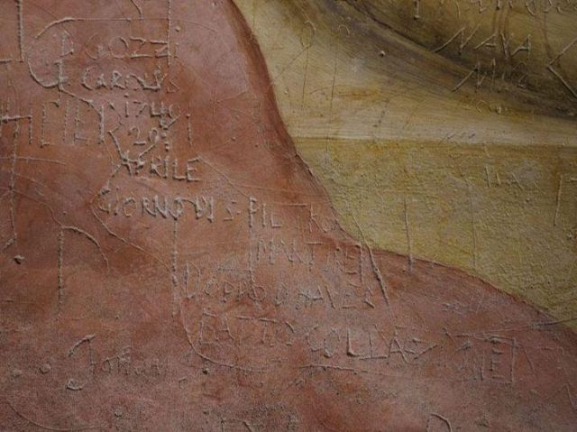 Leggendo i graffiti si trovano nomi di soldati e cognomi di famiglie patrizie mantovane, suonatori di bande militari e persino sospiri amorosi: “Alhir, in questo luogo ho trovato il mio tesoro, il mio angelo e il mio bambino, sono felice a te vicino”.