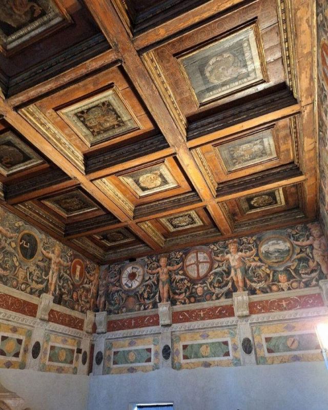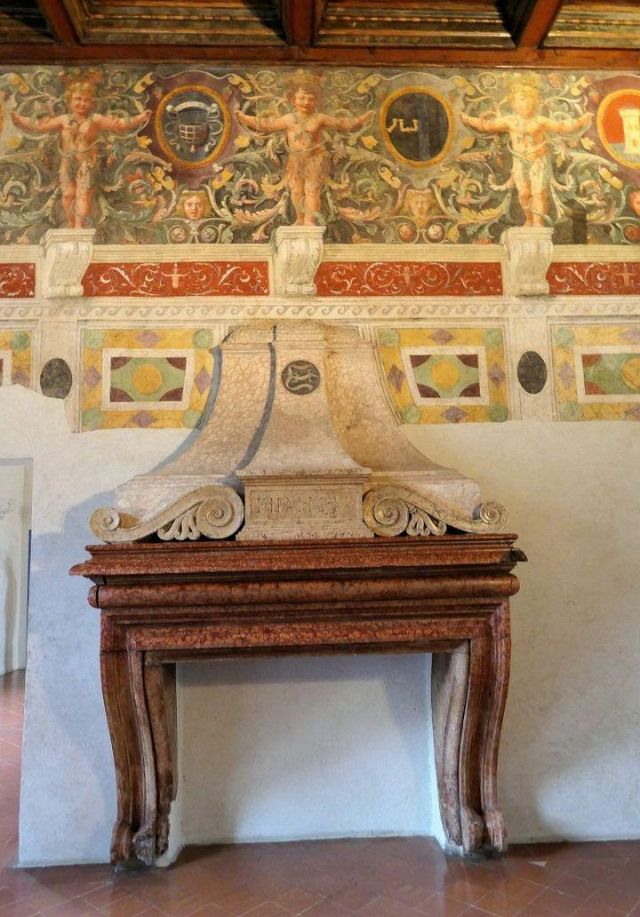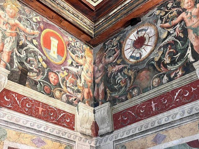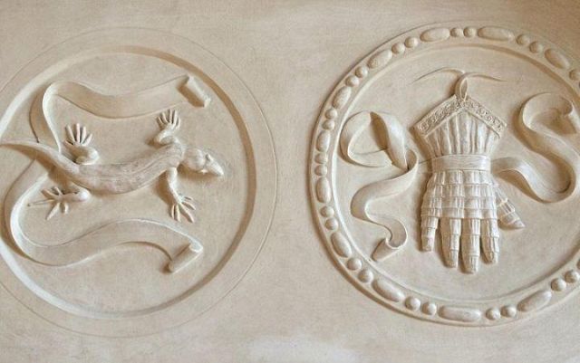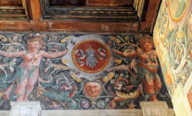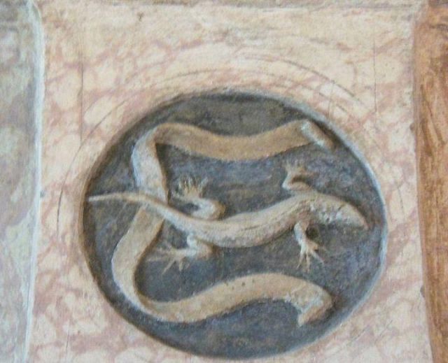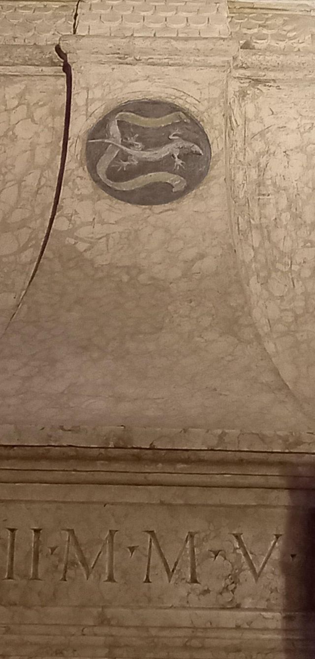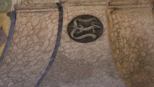 Le salamandre sono nascoste ovunque nel palazzo: fra gli affreschi, sui camini, nelle decorazioni.