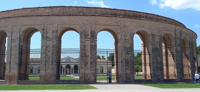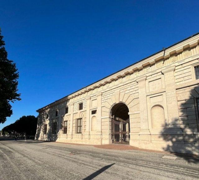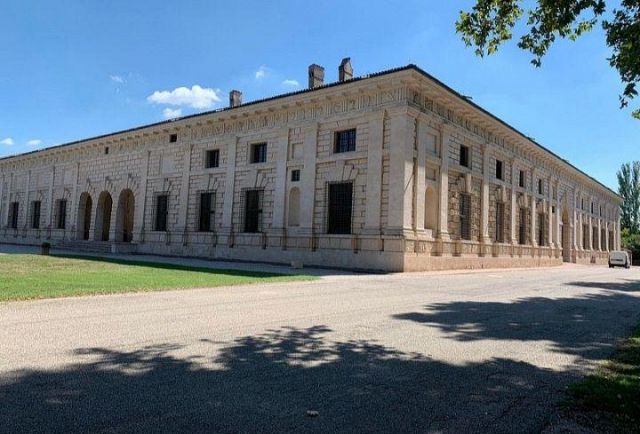In occasione della visita dell'imperatore Carlo V, Giulio Romano ebbe l’incarico di riunire il Palazzo col castello mediante una nuova serie di sale, gallerie, scaloni, logge e cortili.