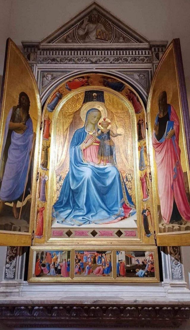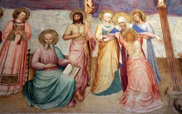 Risale al Vasari la notizia secondo cui l'Angelico nel dipingere quest'opera si commoveva fino alle lacrime; lo storico aretino, che descrisse minutamente l'affresco, scrisse anche che nel san Cosma l'Angelico ritrasse il suo amico Nanni di Banco.