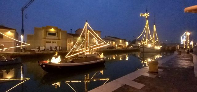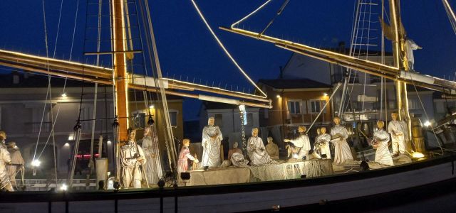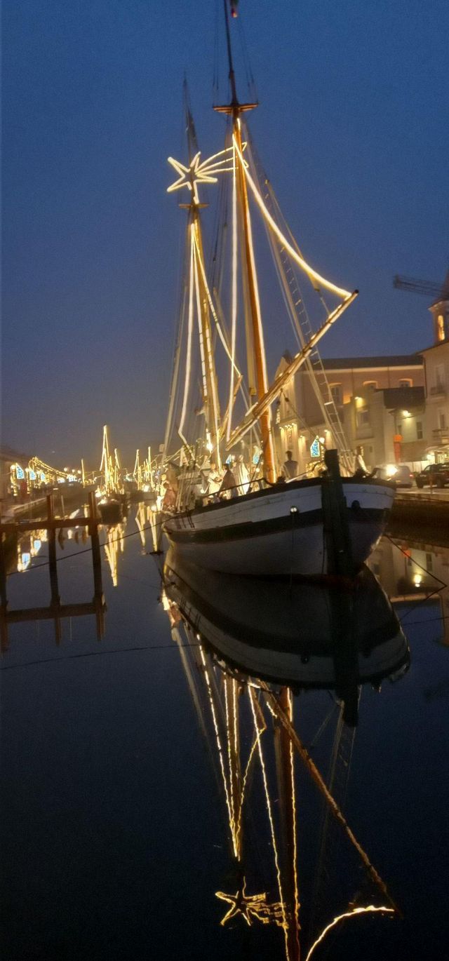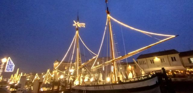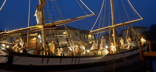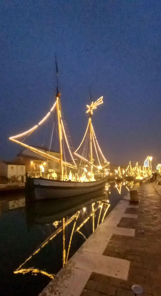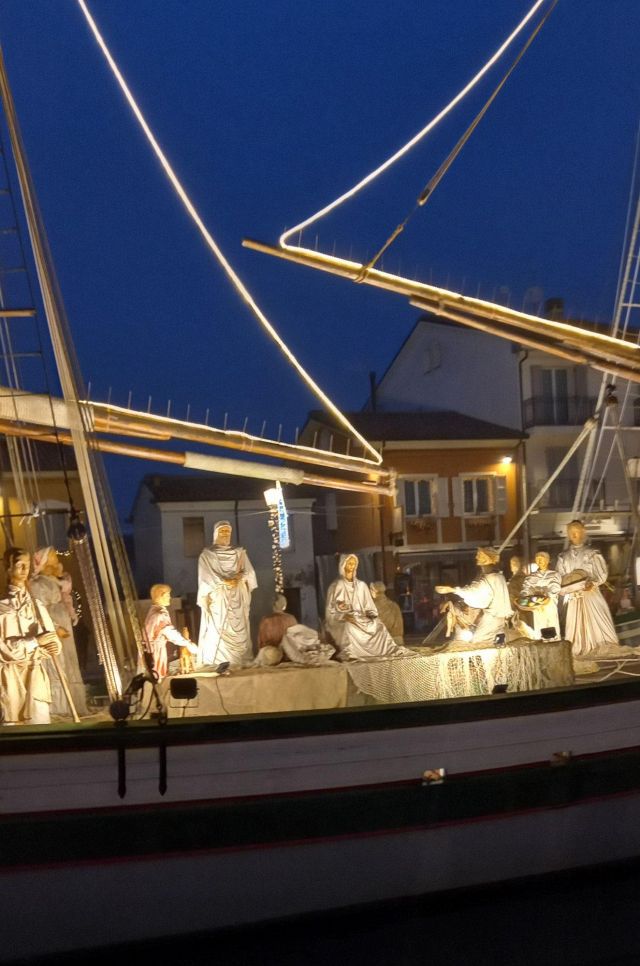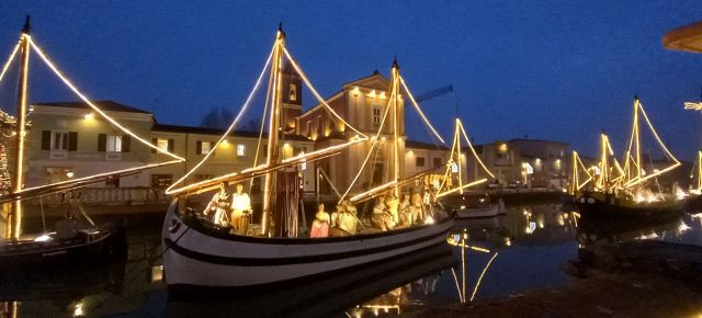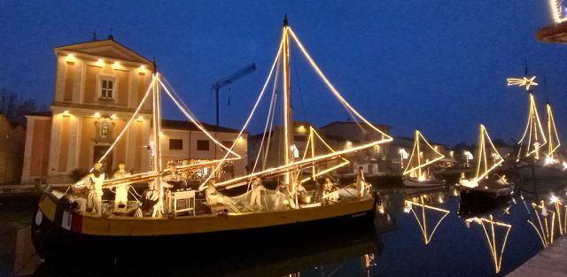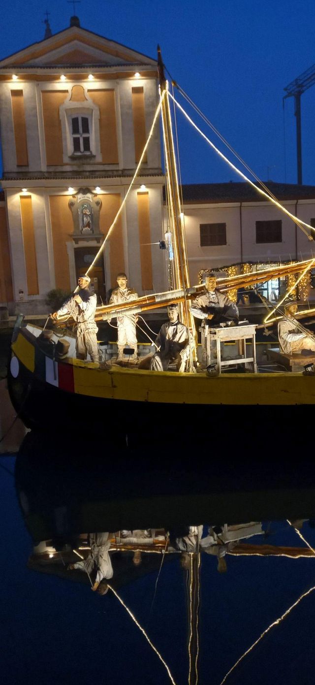 Il luogo palcoscenico di questo spettacolo è il centro storico. Sul leonardesco porto canale, le barche che vi sono armeggiate ospitano il Presepe della Marineria, unico al mondo nel suo genere. Oltre 50 statue d'autore a grandezza naturale sono i personaggi di questo presepe all'aperto, ammirabile in ogni momento della giornata e della notte. Sempre affascinante, ma è sul far della sera, quando tutte le innumerevoli luci si accendono, che raggiunge il massimo del suo splendore, lasciando i visitatori senza parole. Quelle luci, che permettono alle statue di riflettersi nelle acque del porto canale, conferiscono al Presepe della Marineria quella autorevole bellezza che merita di essere vissuta.