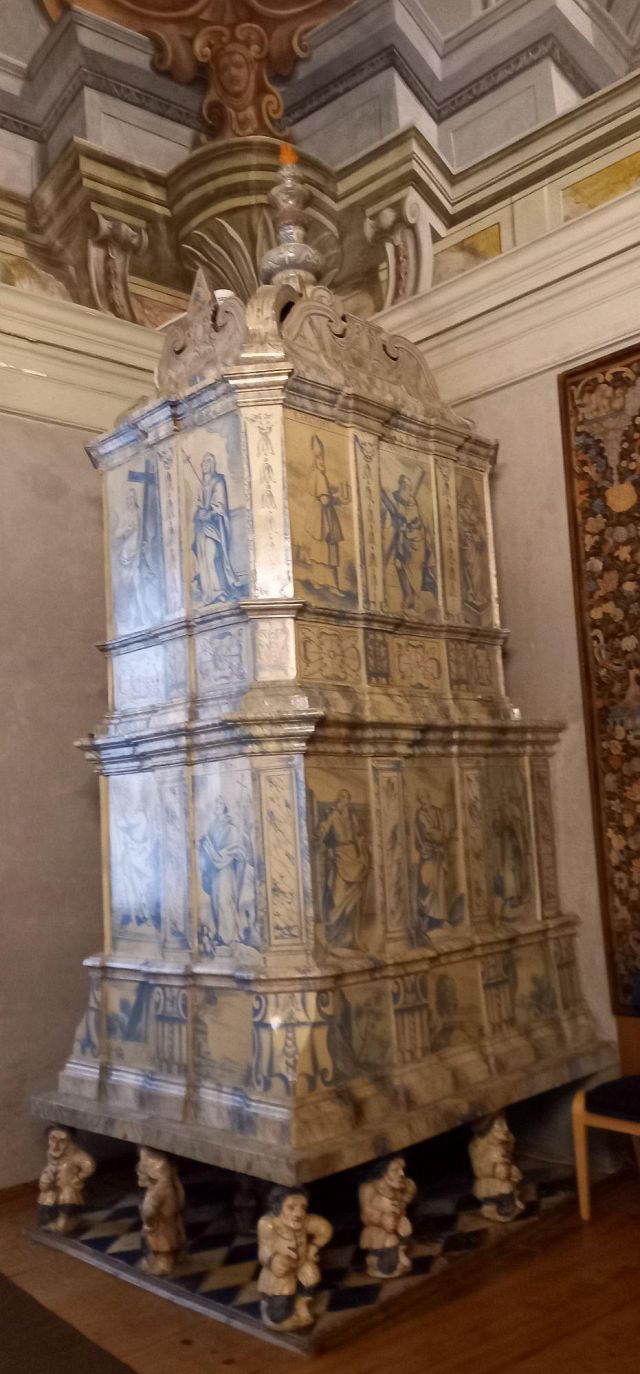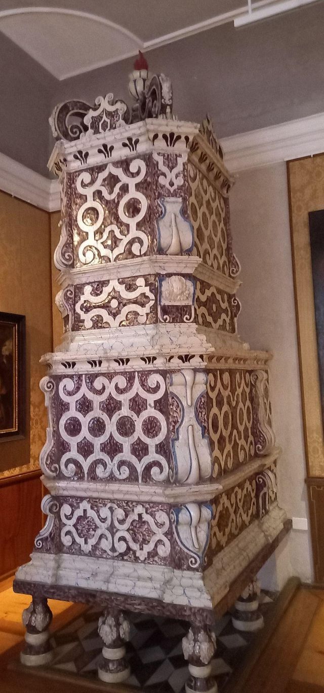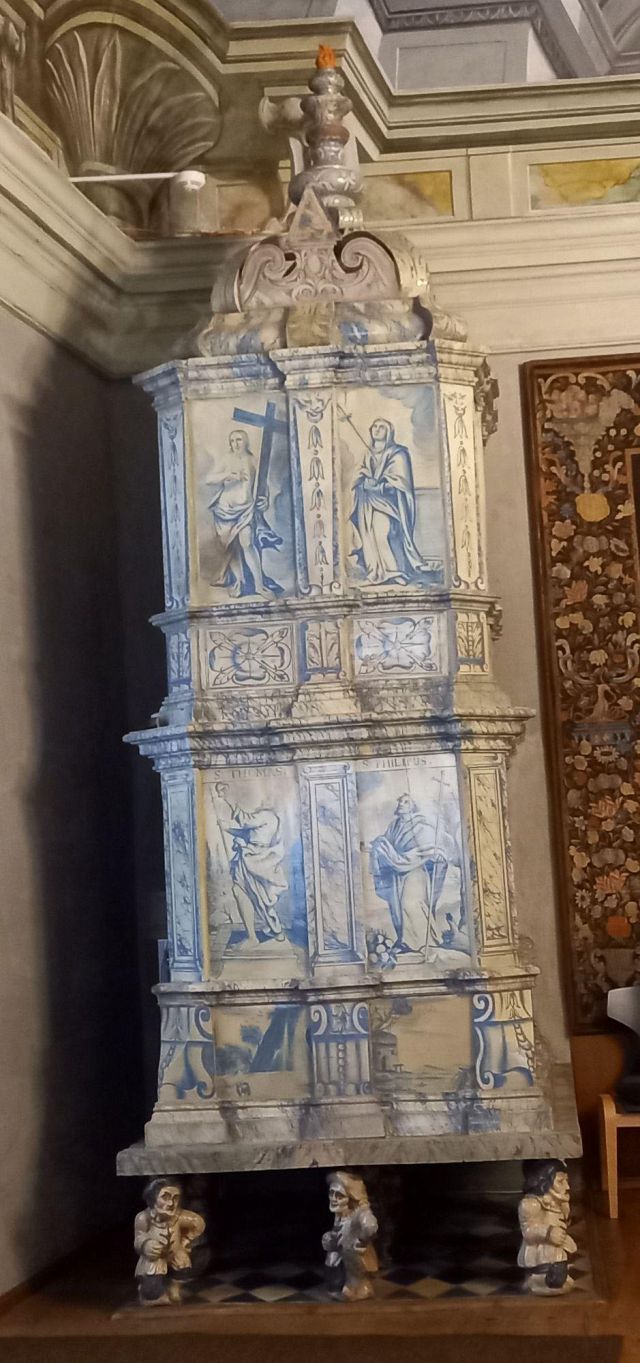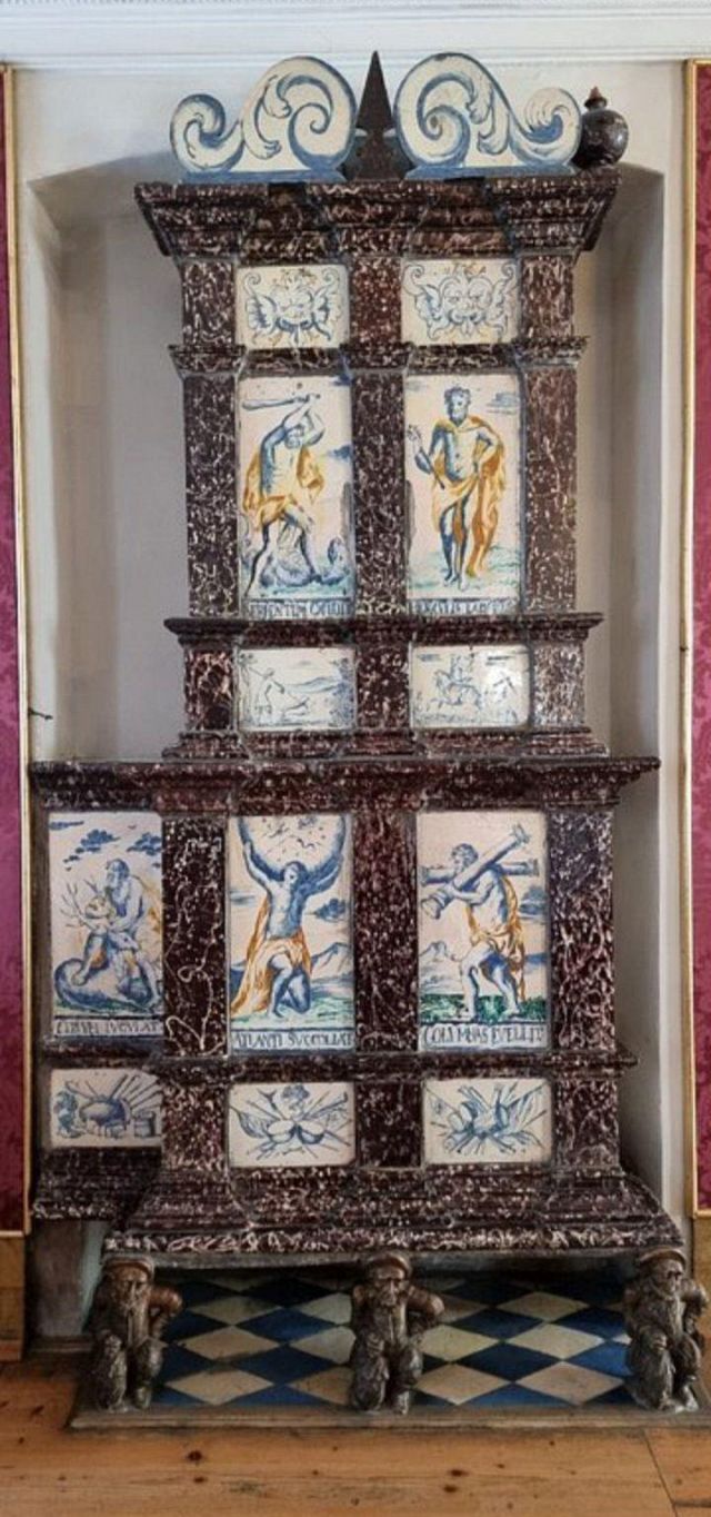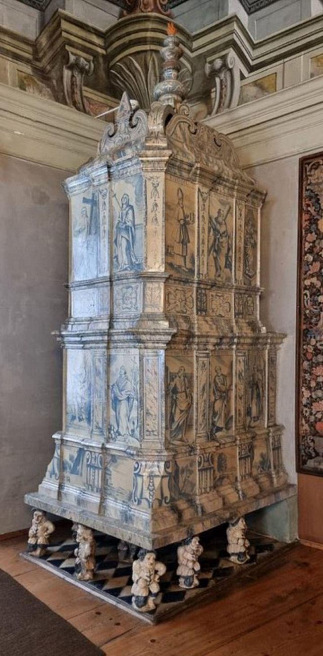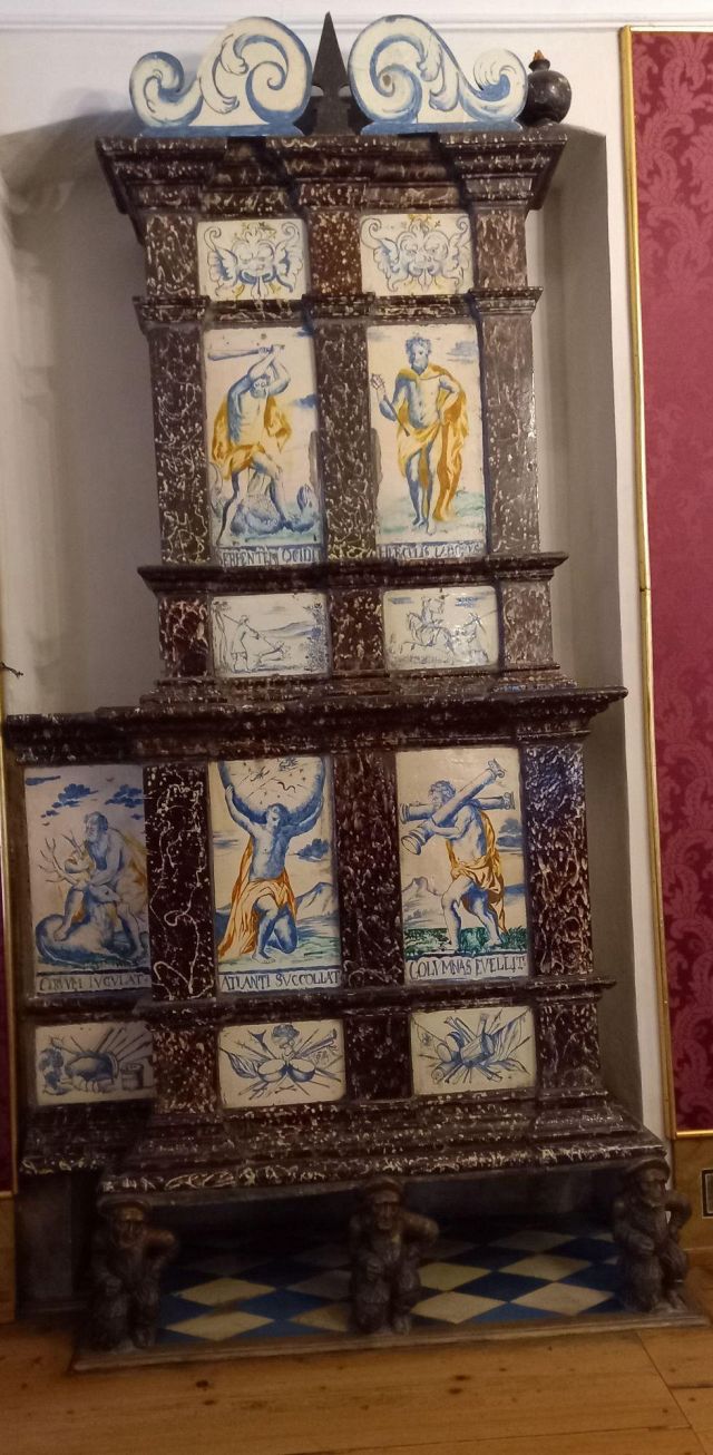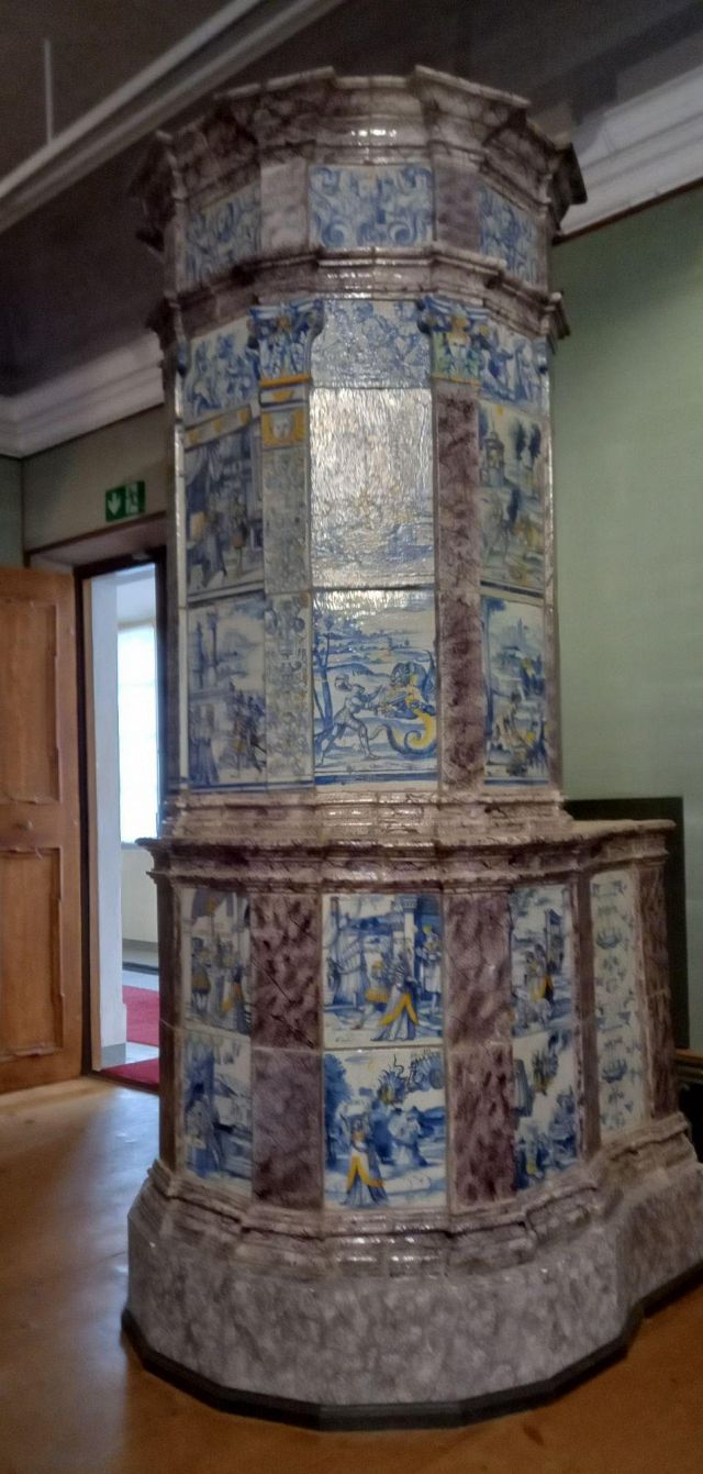 stufa in maiolica, realizzata nel 1546 da Bartlmä Dill Riemenschneider, con formelle dipinte raffiguranti la storia di Giasone e Medea.