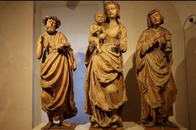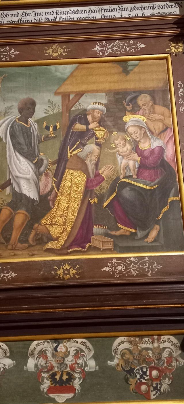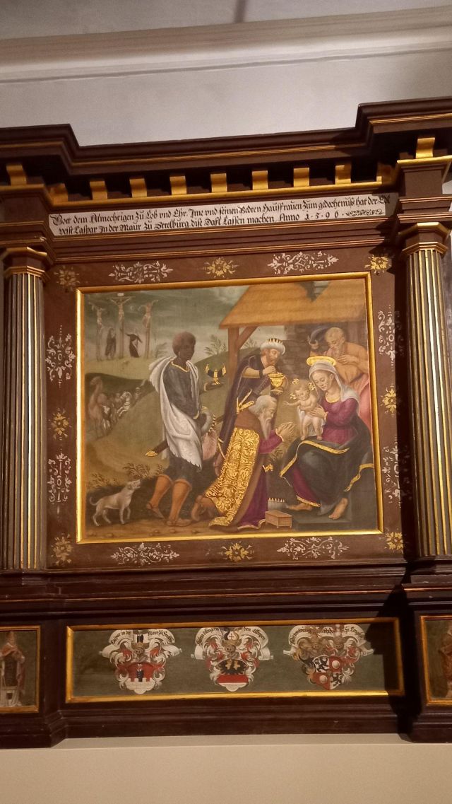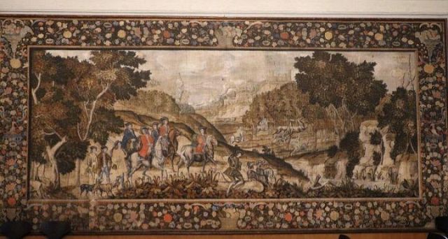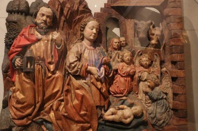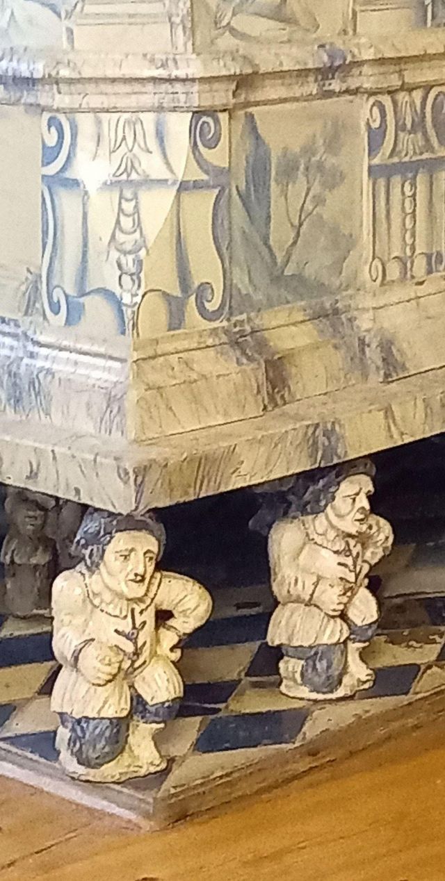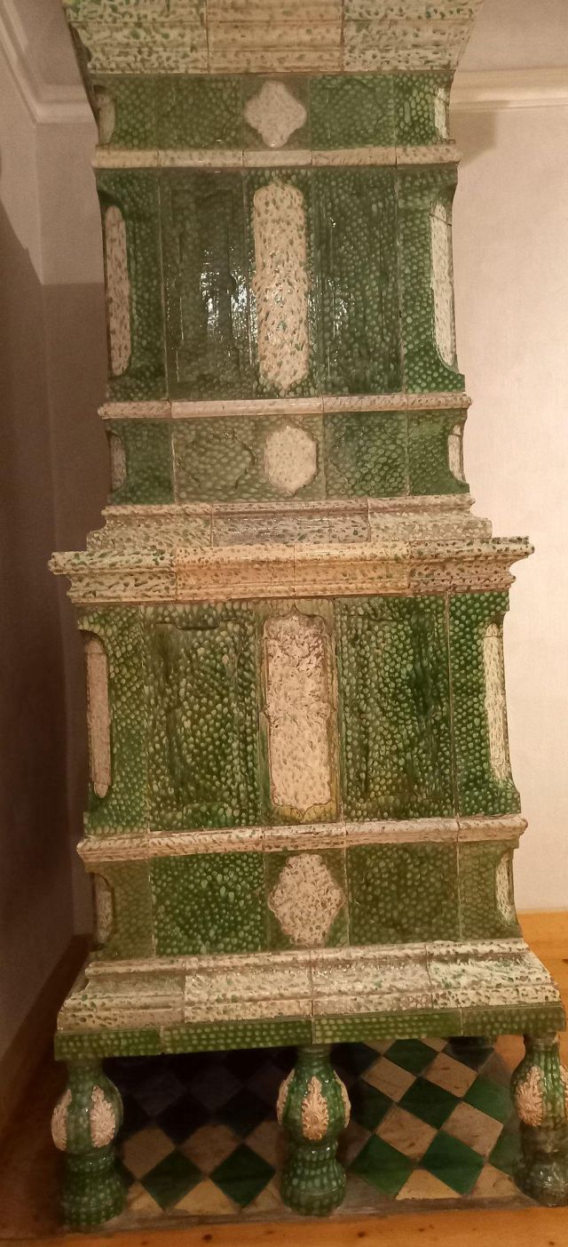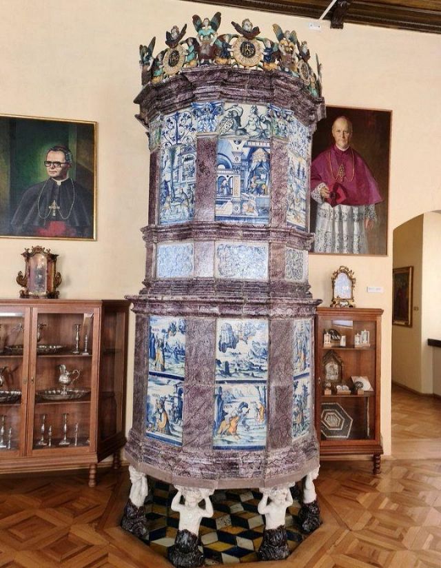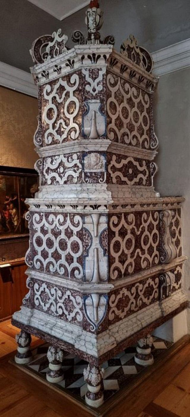 stufa in maiolica, realizzata nel 1546 da Bartlmä Dill Riemenschneider, con formelle dipinte raffiguranti la storia di Giasone e Medea.