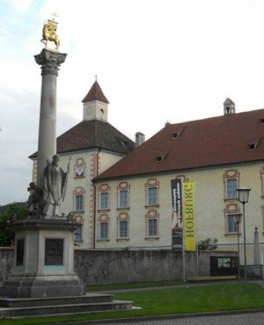 Albrecht Lucchese, architetto di corte ad Innsbruck, progettò un complesso a quattro ali che si estendeva su tre piani e che doveva essere organizzato intorno ad un cortile interno con archi su tutti e quattro i lati. Nelle nicchie del primo piano erano previste un totale di 44 sculture in terracotta per rappresentare l'albero genealogico degli Asburgo del cardinale Andrea d'Austria. Tuttavia, il concetto elaborato è rimasto incompiuto: Oggi, solo 24 di queste figure si trovano nelle nicchie dei pilastri dell'arcata e altre otto nel passaggio dell'ala sud.