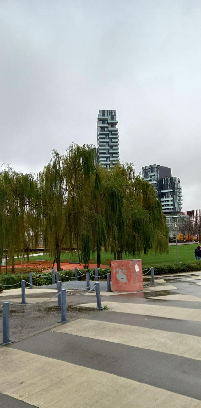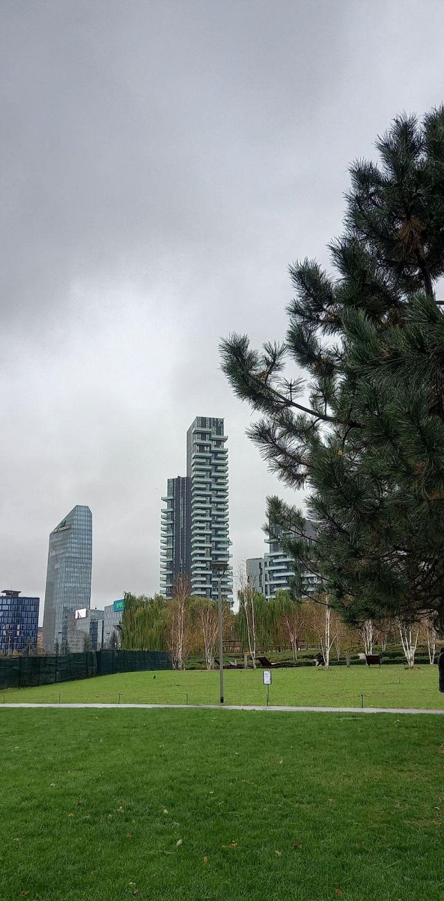 Oggi le curve scintillanti dei grattacieli convivono con i vecchi edifici operai, in un dialogo pacifico mediato dalla verde collina della Biblioteca degli Alberi.