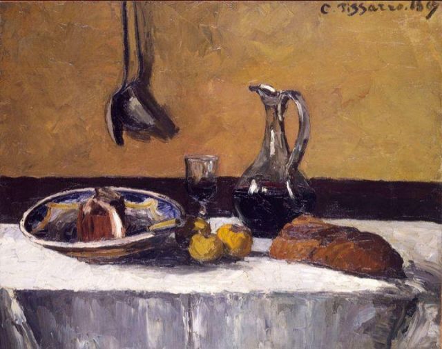 Camille Pissarro, Natura morta con caraffa di vino, 1867