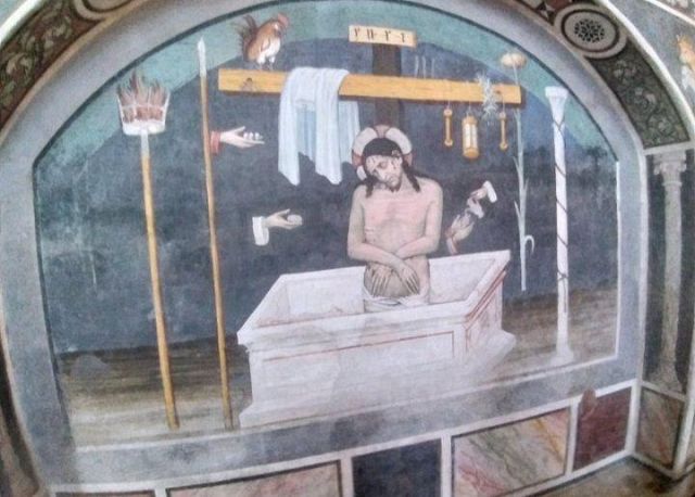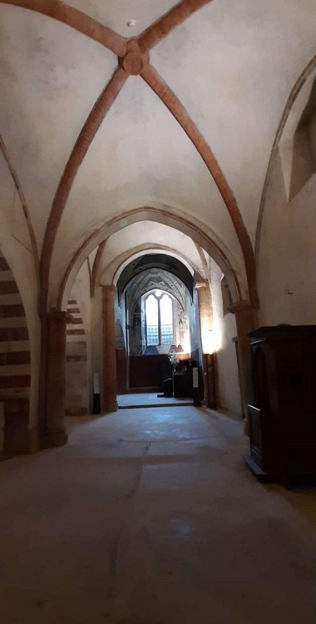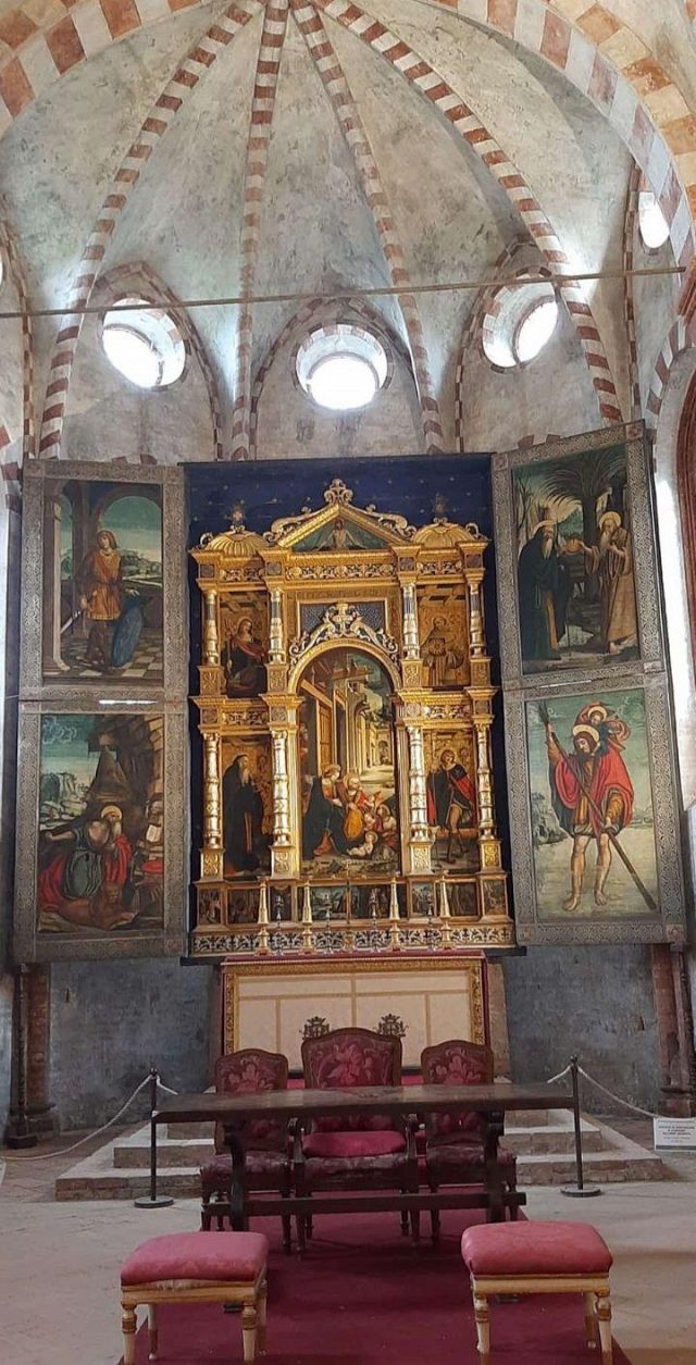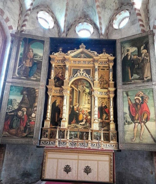 L'abside conserva inoltre un pregevole pentittico di Defendente Ferrari datato 1531 e realizzato come voto su volere della vicina città di Moncalieri durante l'epidemia di peste dello stesso anno.