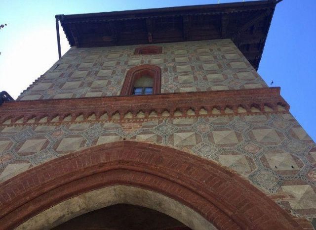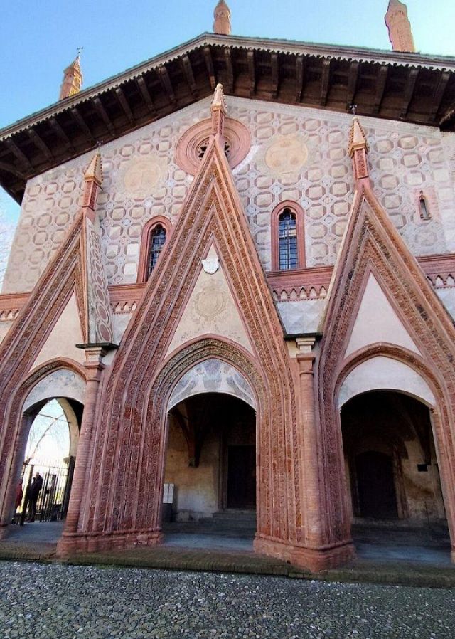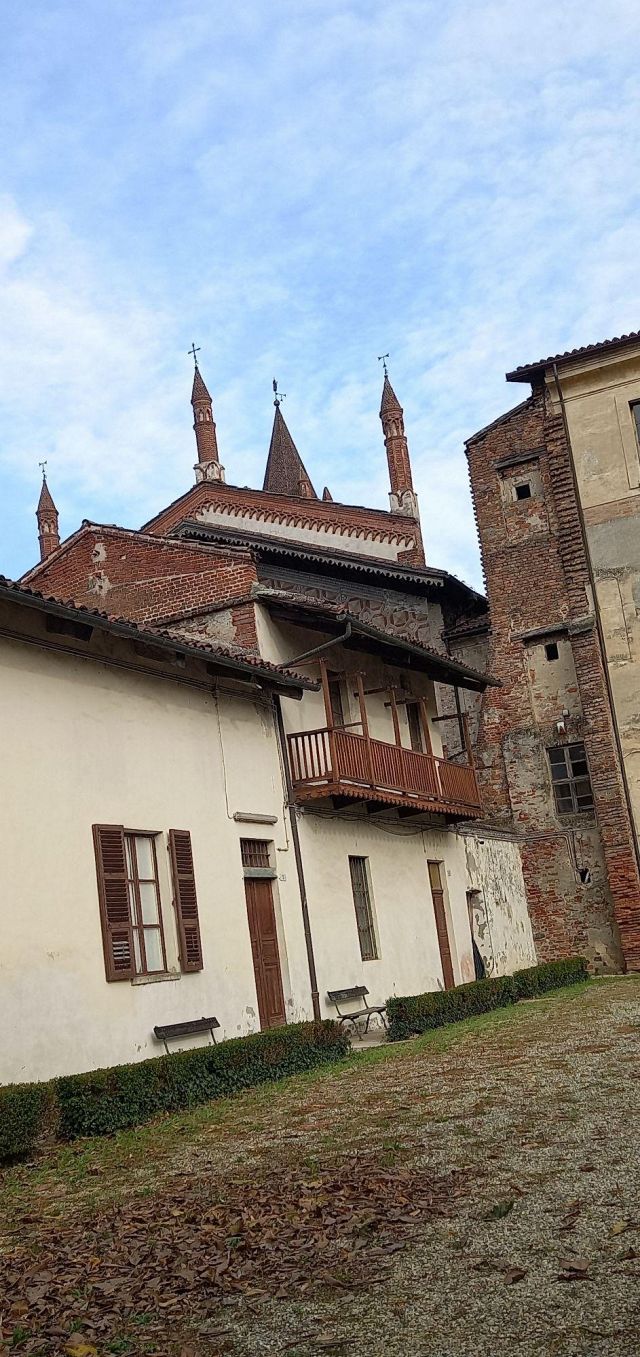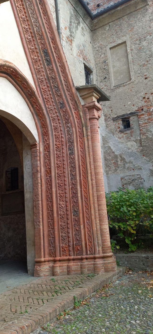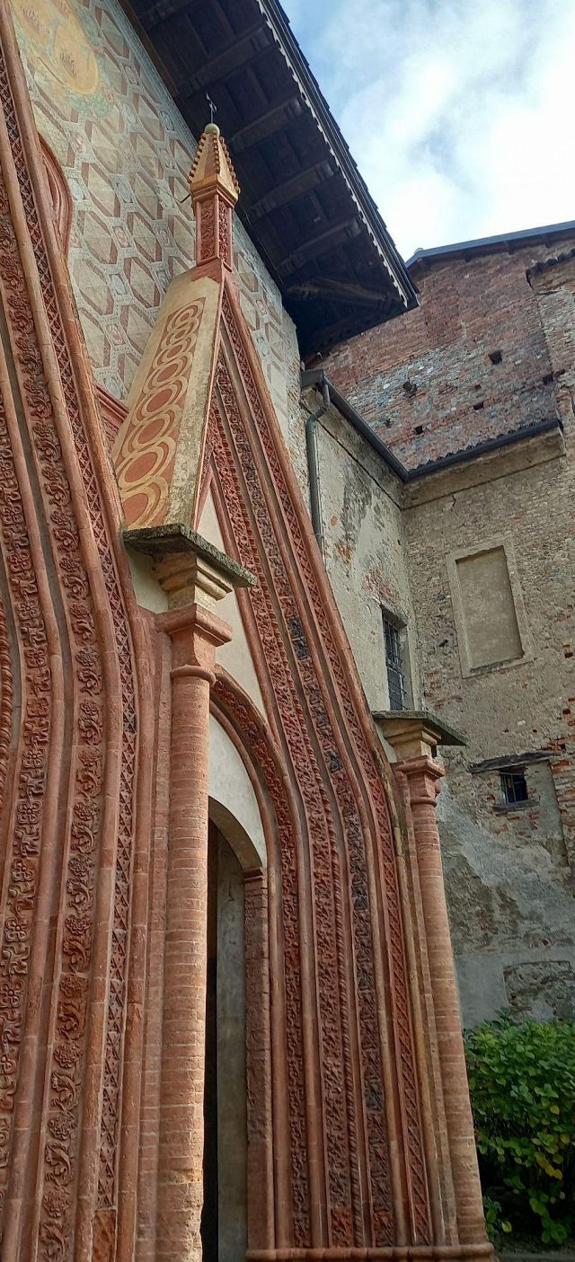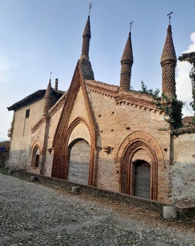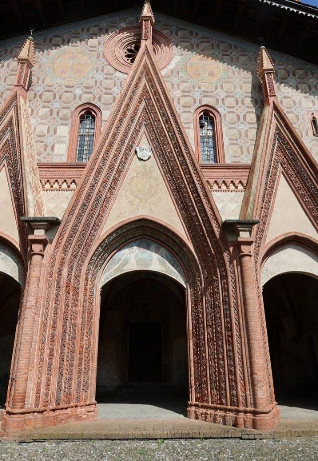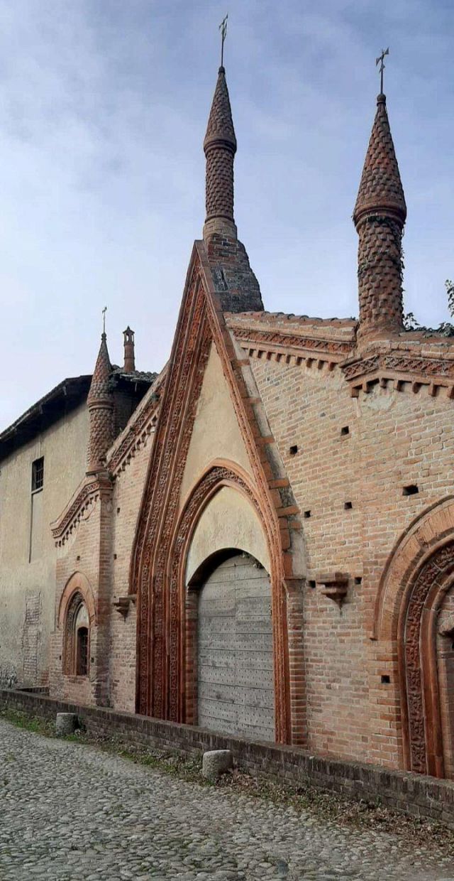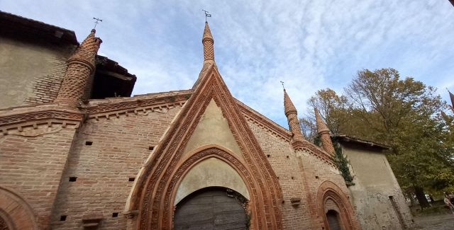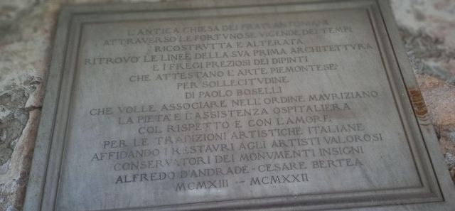 Il complesso ospedaliero sorse a partire dal 1188 per volere dei canonici dell’ordine di Sant’Antonio di Vienne, i quali si dedicarono all’assistenza dei pellegrini sulla Via Francigena e alla cura dei malati di herpes zoster (il “fuoco di Sant’Antonio”). L’ente godette nei secoli della protezione dei Savoia e, alla soppressione dell’ordine ospedaliero antoniano, inglobato in quello di Malta nel 1775, passò all’Ordine Mauriziano, cui ancora oggi appartiene. L’attuale assetto è frutto di continui ampliamenti e modifiche nei secoli. La chiesa, che risultava terminata già a inizio Duecento, fu rimaneggiata nel Quattrocento con l’aggiunta di due navate laterali. Alla fine del medesimo secolo l’edificio, così come l’Ospedaletto, venne dotato di una facciata a ghimberghe e coronamento con pinnacoli in cotto per volere del priore commendatario Jean de Montchenu II. Il campanile gotico risale invece al XIV secolo. Tra gli elementi artistici di pregio, all’esterno si segnalano, oltre alle già citate ghimberghe in cotto, le chiavi di volta, i capitelli e le mensole variamente figurate presenti nel pronao.