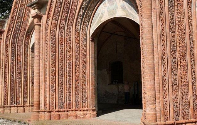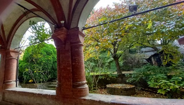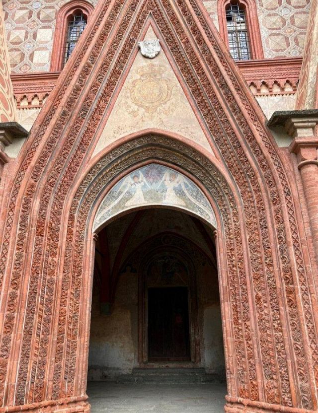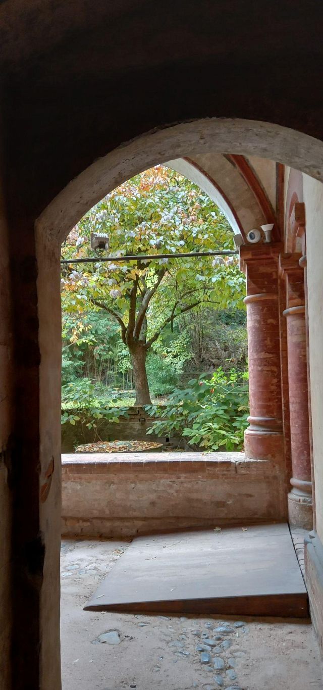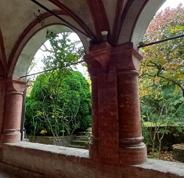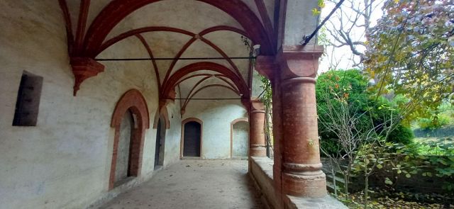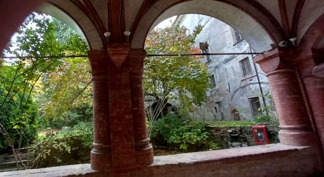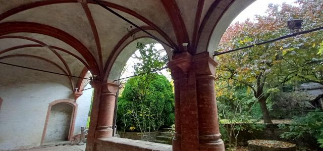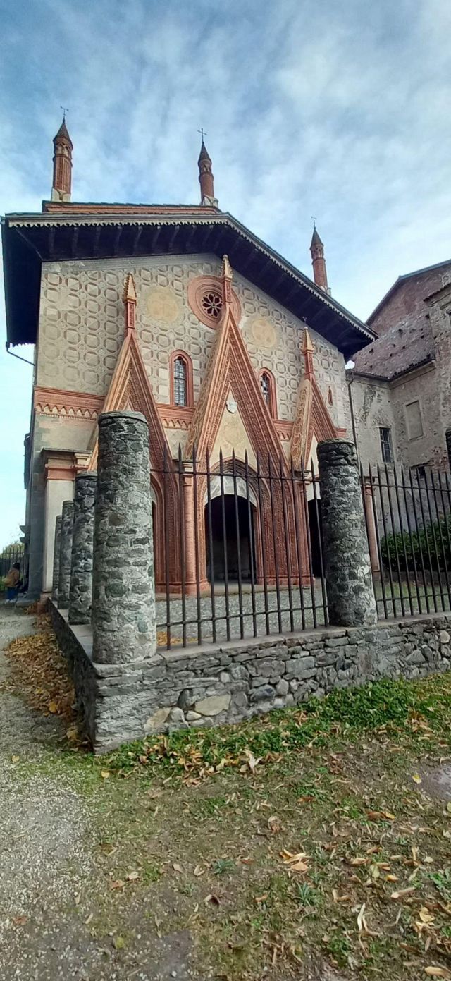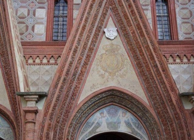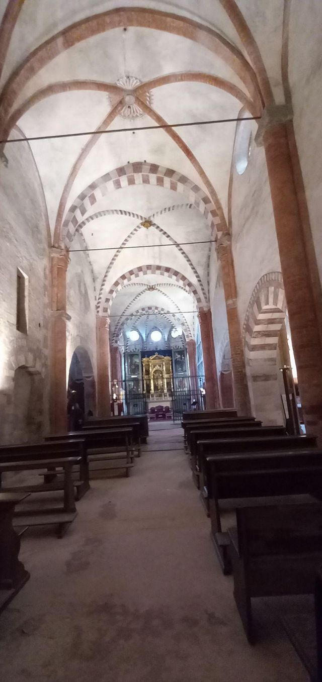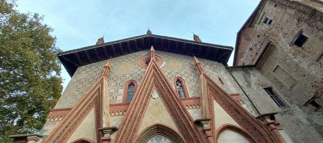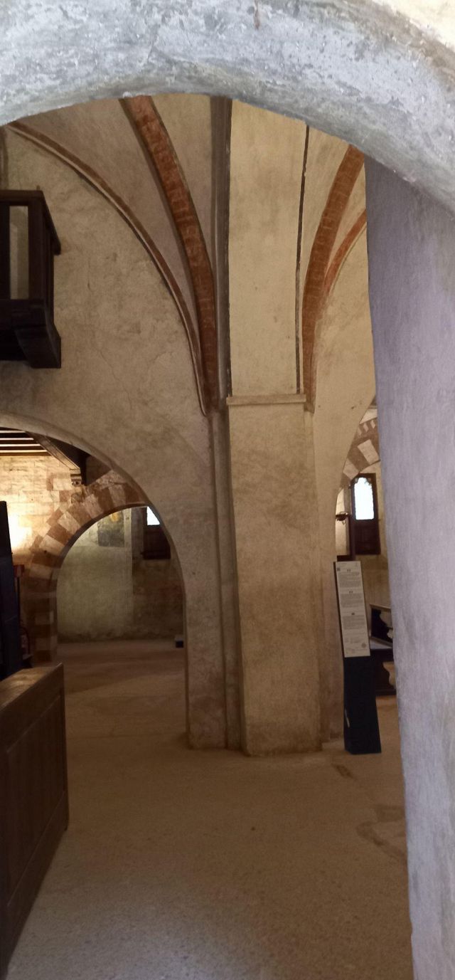 Il complesso ospedaliero sorse a partire dal 1188 per volere dei canonici dell’ordine di Sant’Antonio di Vienne, i quali si dedicarono all’assistenza dei pellegrini sulla Via Francigena e alla cura dei malati di herpes zoster (il “fuoco di Sant’Antonio”). L’ente godette nei secoli della protezione dei Savoia e, alla soppressione dell’ordine ospedaliero antoniano, inglobato in quello di Malta nel 1775, passò all’Ordine Mauriziano, cui ancora oggi appartiene. L’attuale assetto è frutto di continui ampliamenti e modifiche nei secoli. La chiesa, che risultava terminata già a inizio Duecento, fu rimaneggiata nel Quattrocento con l’aggiunta di due navate laterali. Alla fine del medesimo secolo l’edificio, così come l’Ospedaletto, venne dotato di una facciata a ghimberghe e coronamento con pinnacoli in cotto per volere del priore commendatario Jean de Montchenu II. Il campanile gotico risale invece al XIV secolo. Tra gli elementi artistici di pregio, all’esterno si segnalano, oltre alle già citate ghimberghe in cotto, le chiavi di volta, i capitelli e le mensole variamente figurate presenti nel pronao.