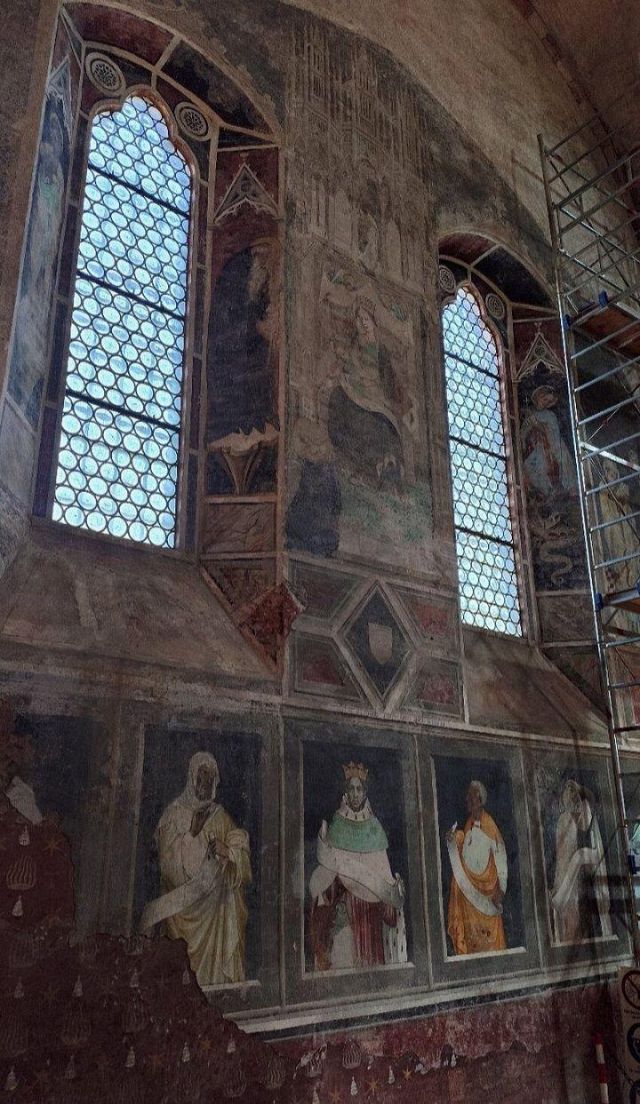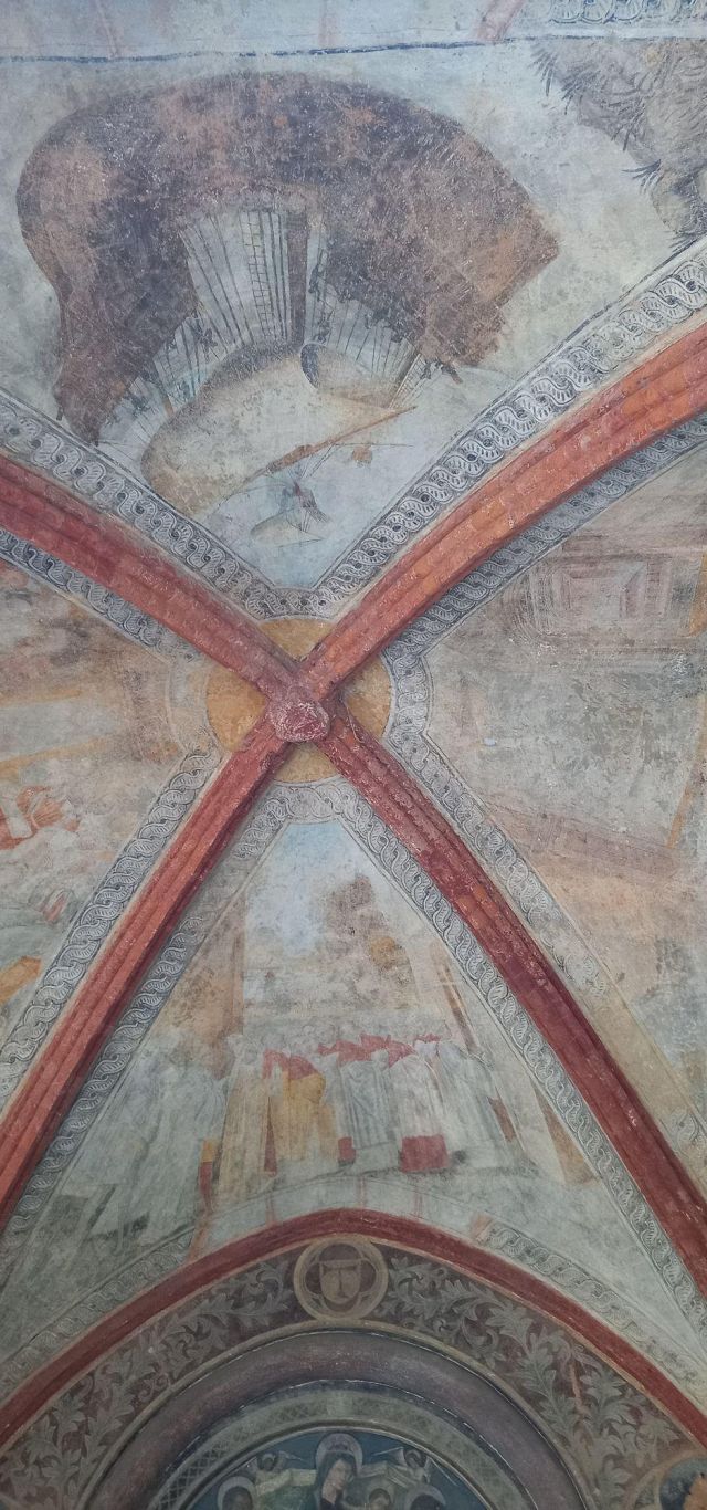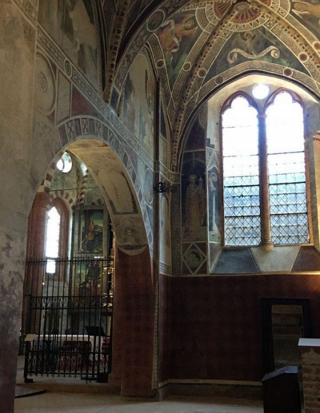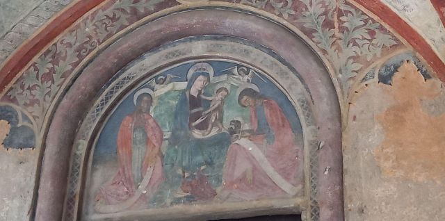 All'interno le decorazioni più antiche, risalenti alla fine del XII secolo, si trovano sulla parete sinistra della navata principale, tra le due cappelle laterali, e raffigurano il Cristo benedicente, il Presepio e i Santi Pietro e Paolo. Risalgono invece all’inizio del XIV secolo gli affreschi -oggi mutili- raffiguranti il Cristo benedicente assiso su un faldistorio tra i simboli degli evangelisti e alcuni apostoli posti sopra l’arcata della terza cappella della navata sinistra. All’interno dello stesso ambiente vi sono altri affreschi risalenti al XIV e XV secolo, raffiguranti l’Adorazione dei magi, la Presentazione di Gesù al tempio e l’Annunciazione. L’interno della chiesa fu affrescato con una successiva campagna decorativa intorno al 1395, nel corso della quale furono realizzate le scene della cappella della Maddalena. L’opera pittorica maggiore fu iniziata nel 1406 da Giacomo Jaquerio, che ha lasciato la propria firma al di sotto dell’affresco raffigurante la Madonna in trono sito nel presbiterio. Jaquerio fu attivo nella prima metà del Quattrocento ed è annoverato come il più importante promotore del gotico internazionale in Piemonte. Alla sua mano si devono anche Cristo di pietà e le Storie di Sant’Antonio abate sulla parete destra del presbiterio, la Madonna in trono sulla parete sinistra, le Storie di San Biagio nella navata laterale destra. Vero e proprio capolavoro del maestro è però il ciclo della Passione, affrescato nella sacrestia, nel quale Jaquerio unisce elementi del gotico fiorito ad espressioni di intenso realismo. All’interno della chiesa si segnala il Polittico della Natività con i Santi Rocco, Sebastiano, Antonio abate e Bernardino da Siena, realizzato nel 1531 da Defendente Ferrari, cui fa da corredo una predella decorata con scene della vita di Sant’Antonio abate. Il politico venne commissionato dalla Comunità di Moncalieri e donato alla Precettoria per assicurarsi la protezione di Sant’Antonio.