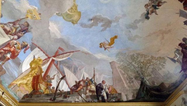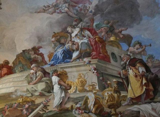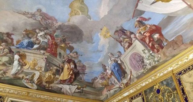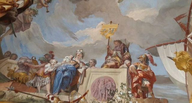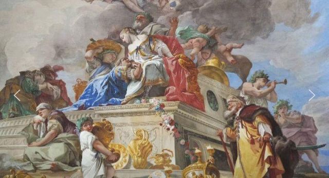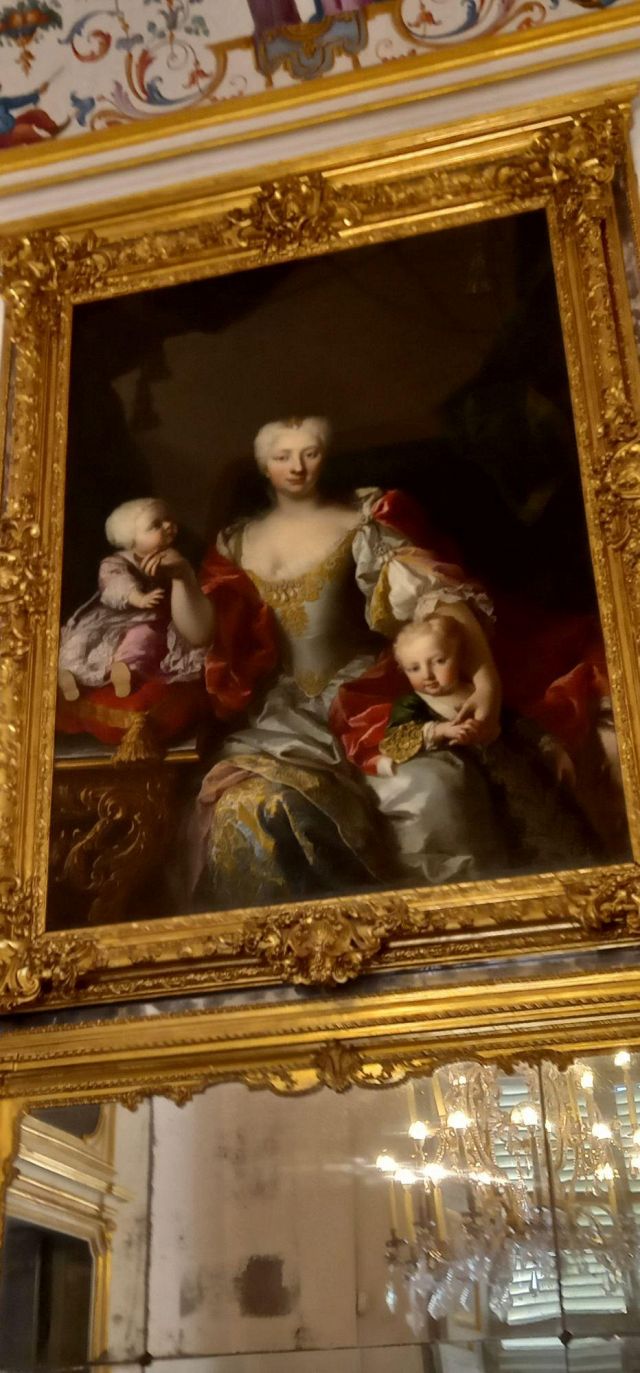 Polissena Cristina d'Assia-Rotenburg, regina di Sardegna, con i due figli maggiori: Vittorio Amedeo ed Eleonora, ritratto di Martin van Meytens presente nel gabinetto della camera del re.
