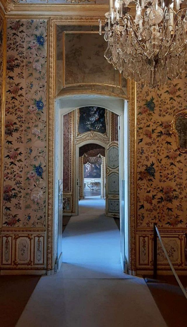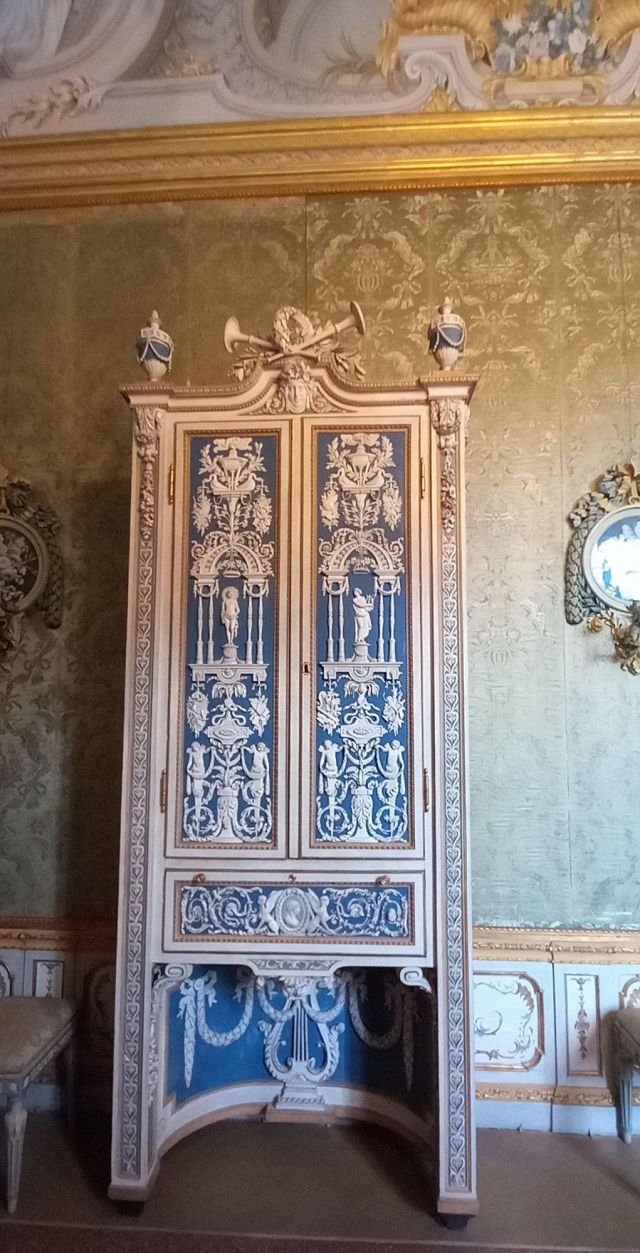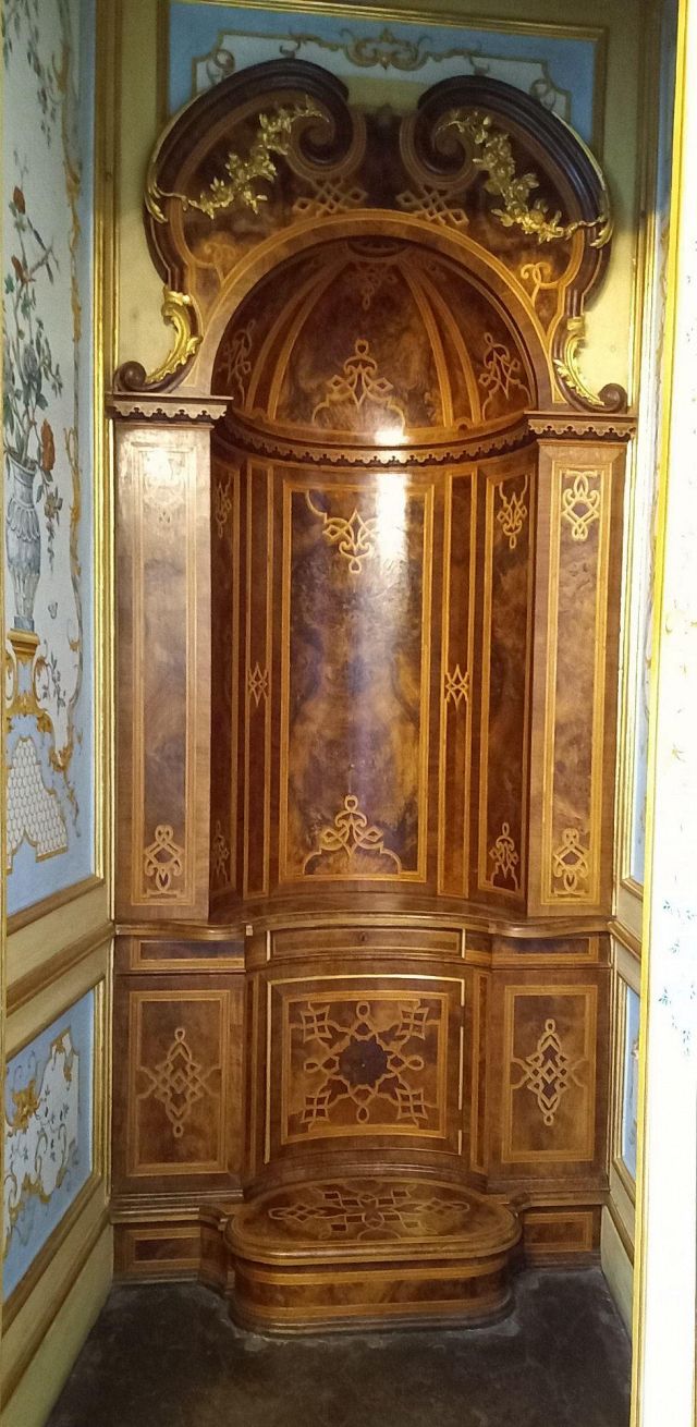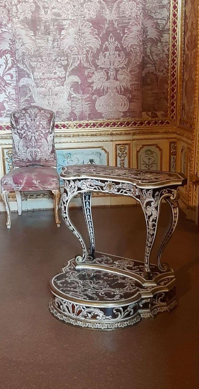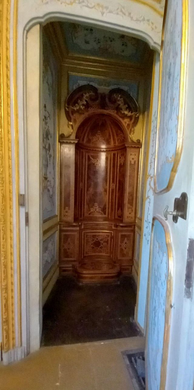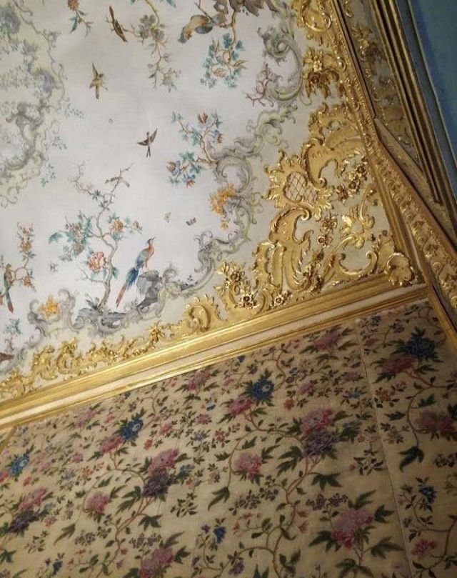 La camera da letto del duca ("17") è contraddistinta da una stoffa da parati di colore rosso violaceo originale, con sovraporta decorati nel 1763 da Michele Antonio Rapous con motivi di fiori e frutta. Qui sono raccolti alcuni tra i più importanti e preziosi mobili di stile piemontese presenti nella palazzina di caccia tra cui spiccano un cassettone, una scrivania e un inginocchiatoio realizzati dall'ebanista Pietro Piffetti con intarsi di vari legni, avorio, ottone, tartaruga e madreperla. Nella stanza si trova un letto a baldacchino con panneggi rossi di stile Luigi X
